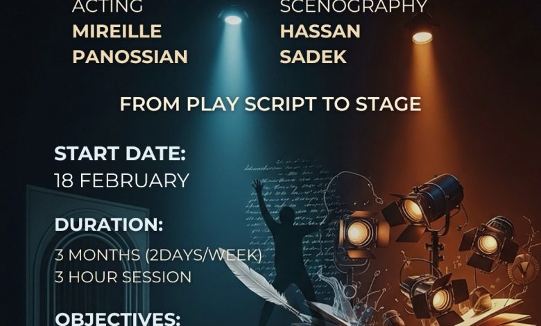 الورشة، التي تنطلق في 18 شباط المقبل في مسرح المدينة – الحمرا، تمتد على ثلاثة أشهر، بواقع يومين أسبوعيًا، وجلسات تدريبية تستغرق ثلاث ساعات، وتأتي ثمرة تعاون بين ميراي پانوسيان في مجال التمثيل، والفنان حسن صادق في مجال السينوغرافيا، في تجربة تجمع الأداء الدرامي مع تصميم الفضاء المسرحي ضمن رؤية متكاملة.