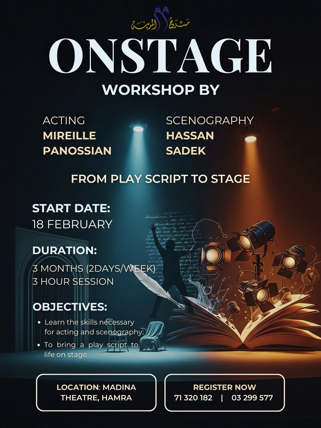 للتسجيل والاستعلام، يمكن التواصل عبر الأرقام المخصصة، على أن تُقام الورشة في مسرح المدينة – الحمرا، أحد أبرز الفضاءات الثقافية في بيروت.