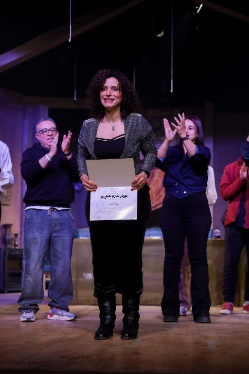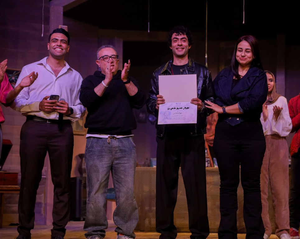 وبعد انتهاء العرض كتقليد جديد في هذه الدورة من المهرجان قامت الدكتورة انجي البستاوي والدكتور حاتم حافظ بتكريم مجموعة من طلاب وخريجي المعهد الذين تألقوا في رمضان الماضي وهم: الدكتورة هايدي عبيد الخالق والفنان محمد ناصر والفنان أحمد أبو زيد.